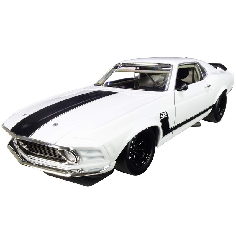 1970 Ford Boss 302 Mustang Street Version White with Black Stripes Limited Edition to 354 Pieces Worldwide 1/18 Diecast Model Car by ACME A1801835W