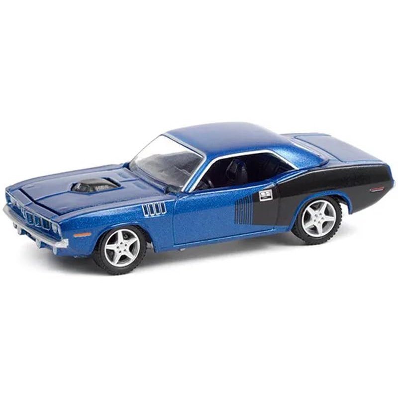 1970 Plymouth Barracuda Custom Hardtop Blue Metallic and Black with Modern HEMI Lettering (Lot #720) Barrett Jackson Scottsdale Edition Series 7 1/64 Diecast Model Car by Greenlight 37230C