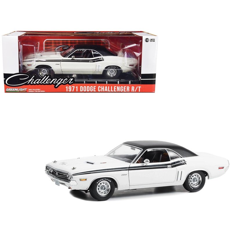 1971 Challenger R/T Bright White with Black Stripes and Top 1/18 Diecast Model Car by Greenlight 13668