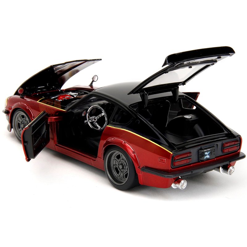 Brand new 1/24 scale diecast car model of 1972 Datsun 240Z Black and Red Metallic with Graphics "Fast X" (2023) Movie Series die cast model car by Jada 34916