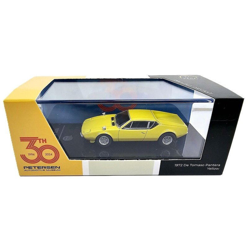Brand new 1/64 scale diecast car model of 1972 Pantera Yellow "Petersen Automotive Museum 30th Anniversary" die cast model car by Paragon PA-55643