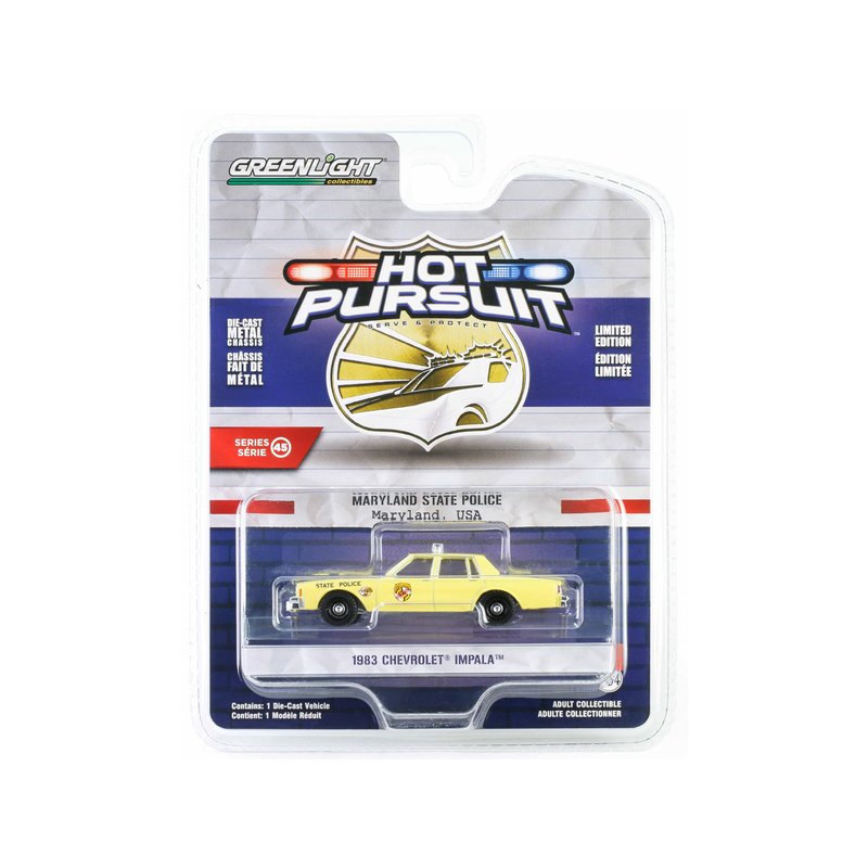 1983 Chevy Impala Yellow Maryland State Police Hot Pursuit Series 45 1/64 Diecast Model Car by Greenlight 43030A