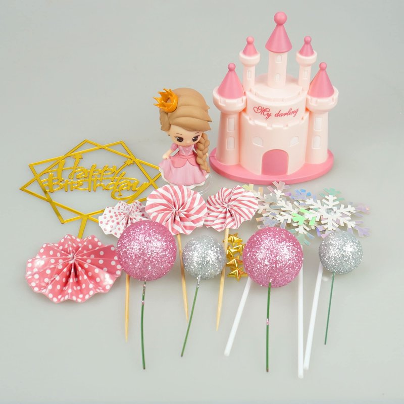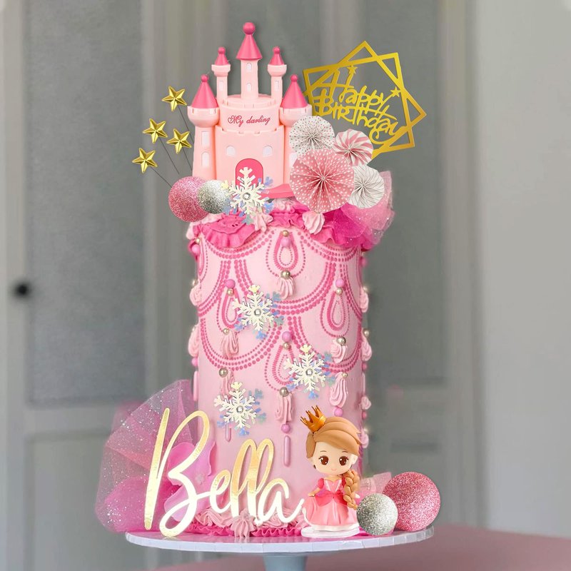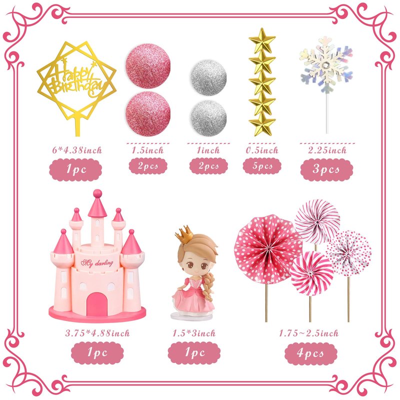 - Package Contents:These castle cake toppers including 1 castle model,1 princess model,1 Happy Birthday topper,3 snowflakes,5 stars,4 folding fans,4 small balls.The specific dimensions are shown in the drawing,suitable for children over 8 years old.
