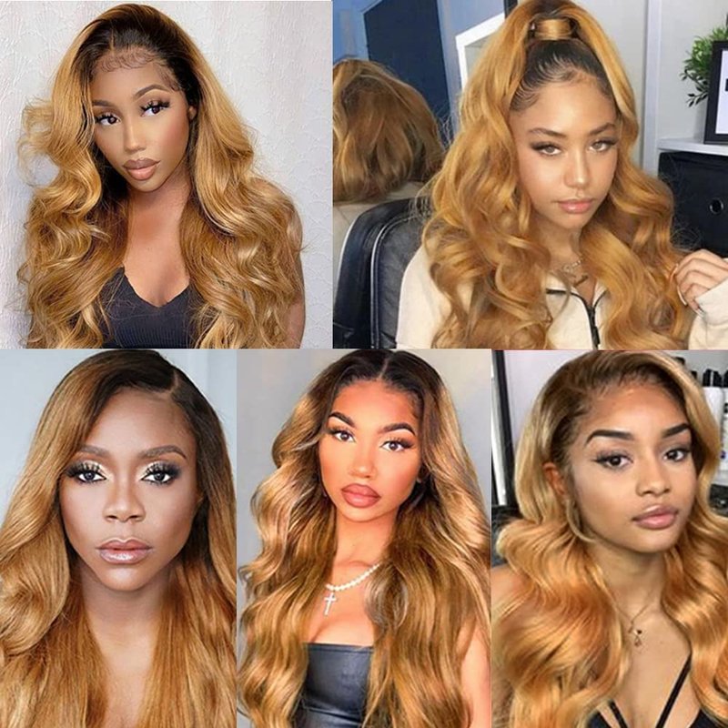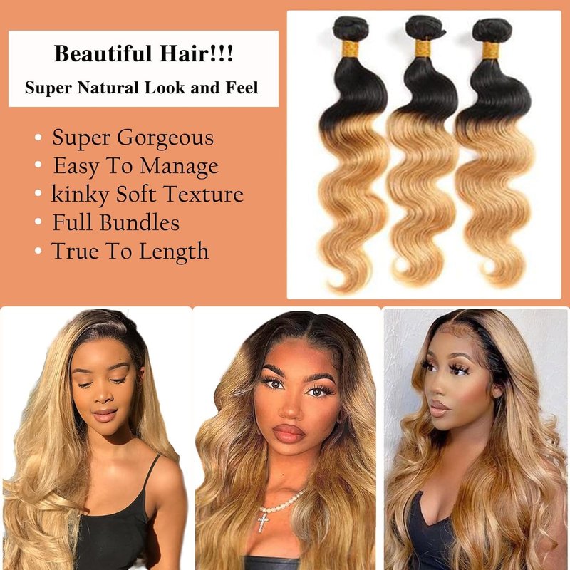 - 1B/27 Ombre Body Wave Bundles Human Hair Material: 100% Unprocessed Brazilian Body Wave Human Hair Bundles, Bundles Human Hair Is Healthy, Soft, Bouncy, No Smell.