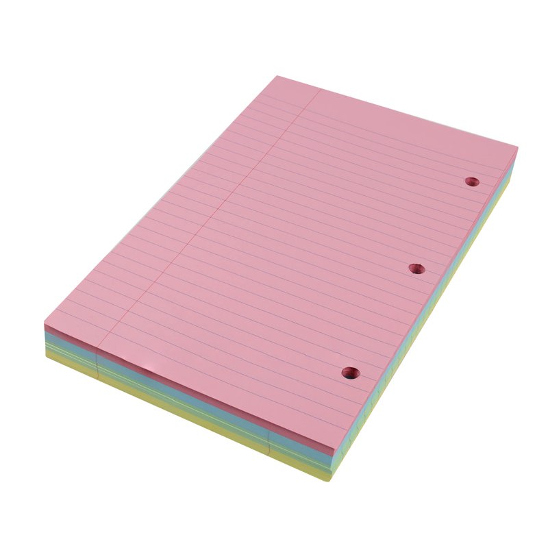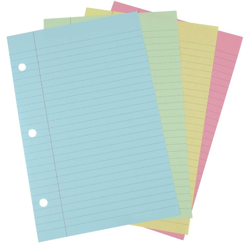 3-Hole Punched - The lined colored paper three-hole punch down one side makes it easy to add the sheets of paper to a ringed binder.