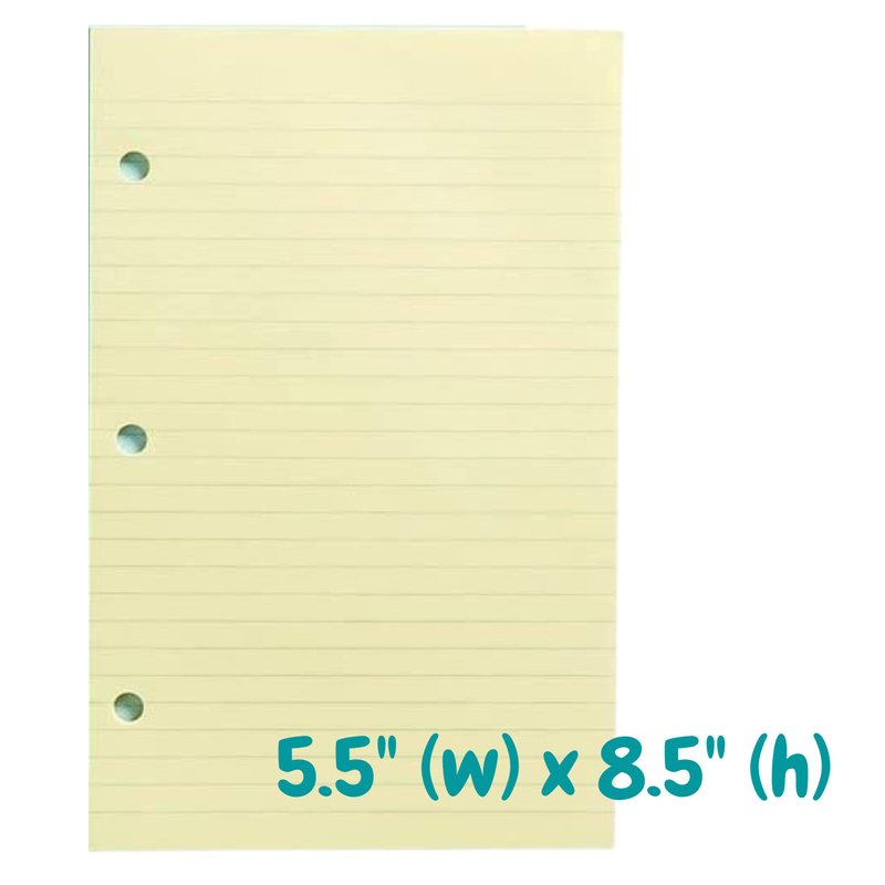 Lined Pages - The loose-leaf paper provides a wide-ruled format, which promotes neat, even lines of legible writing. The paper measures 5.5 by 8.5 inches.