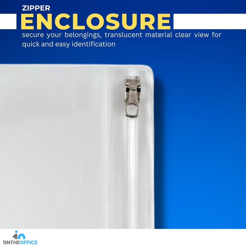 Economy binder pocket provides a convenient way to store small items that are easily lost while your work and travel. Store writing utensils, erasers, keys, money, flash drives, pockets calculators, photos, business cards and more. Soft plastic is clear so you can see exactly what's inside. Secure the contents with the plastic zipper and metal slider. Seven-hole punched design fits standard ring binders.