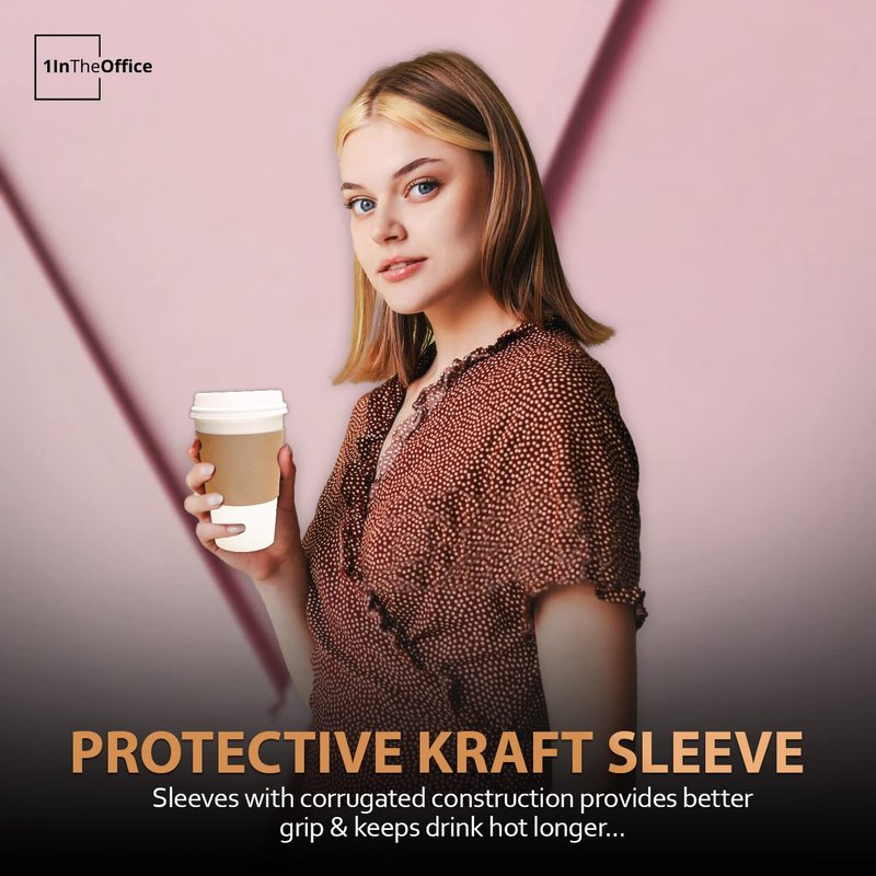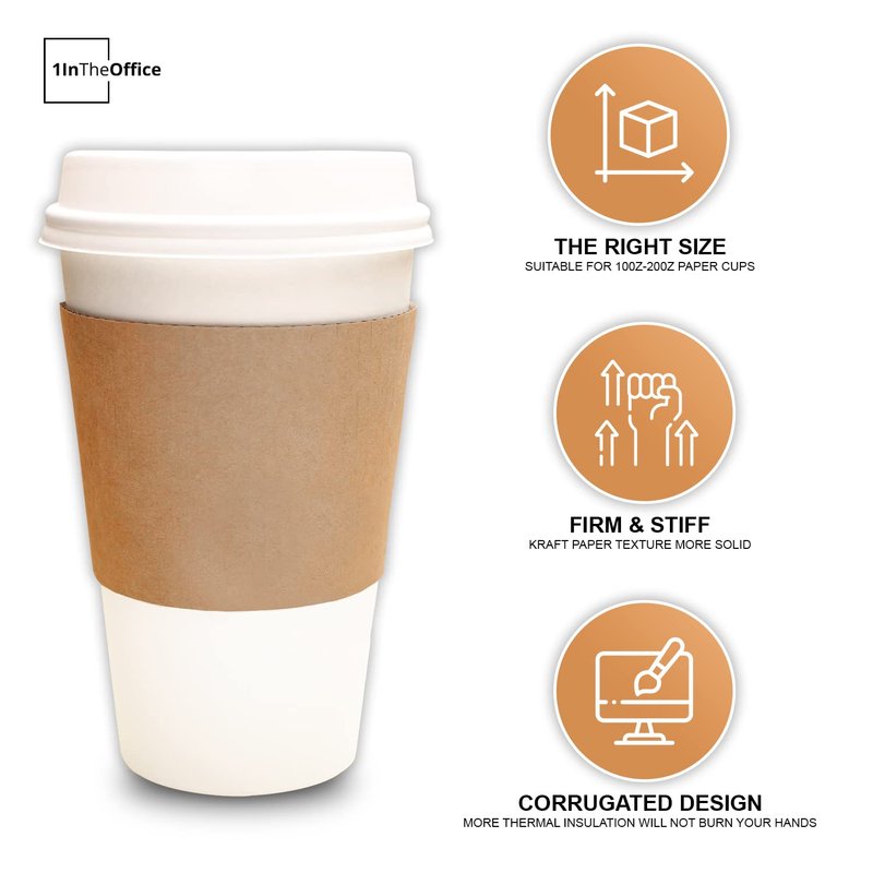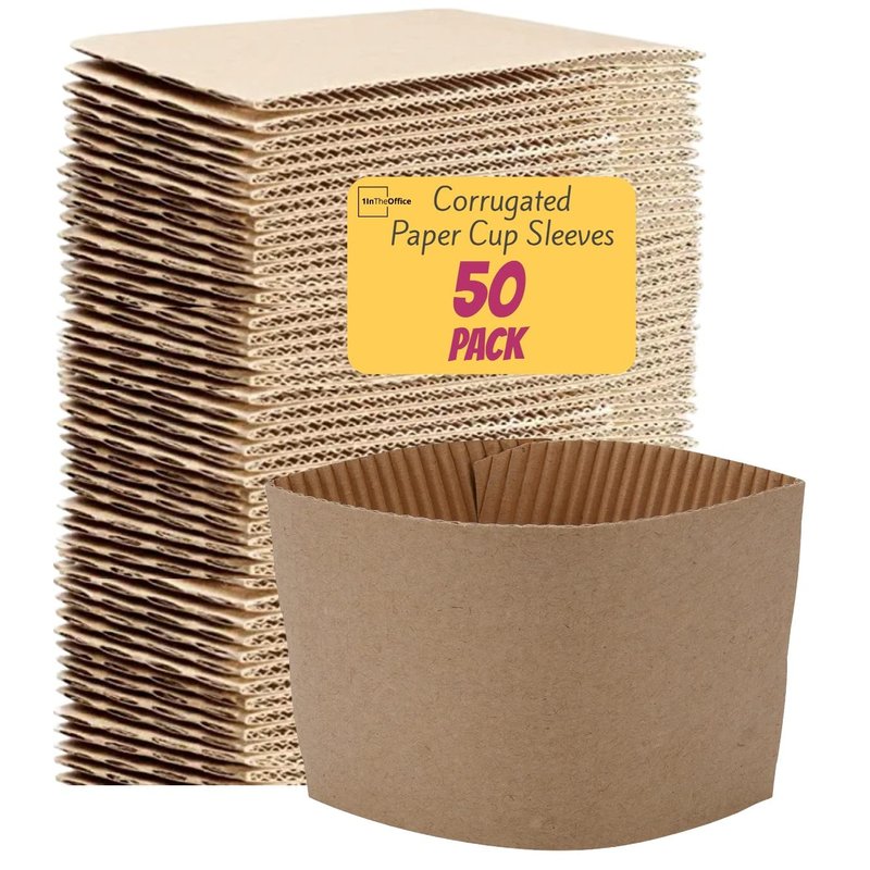 1InTheOffice Corrugated Coffee Cup Sleeves For 10oz 12oz 16 oz (50 Pack)