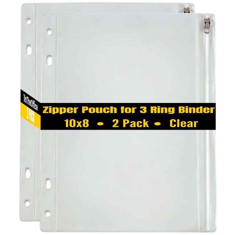 1InTheOffice Zipper Pouch for 3 Ring Binder, Binder Zipper Pocket Pouch, Transparent Binder Pocket, Vinyl Ring Binder Pocket Clear,10" x 8", (2 Pack)