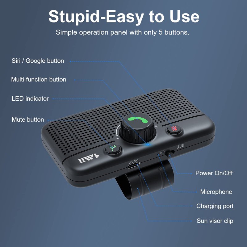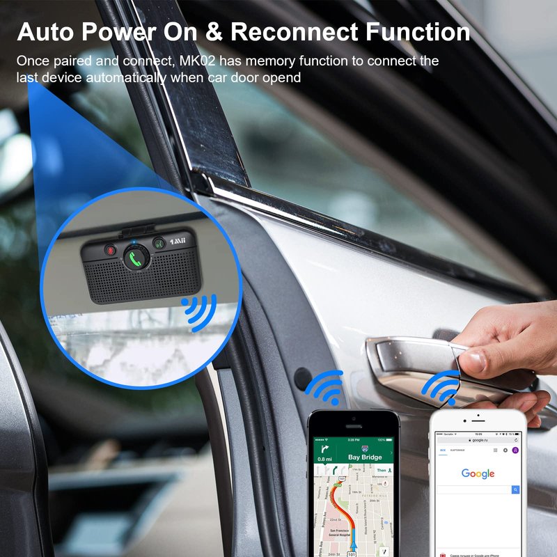 - 【Auto Power On & Reconnection】Start driving without delay as this 1Mii MK02 Bluetooth speaker hands-free car kit switches to Auto Power and connects with your phone when car door is opened.