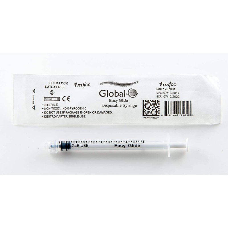 1ml Easy Glide Sterile Syringe Only with Luer Lock Tip, 25 Sterile Syringes, No Needle