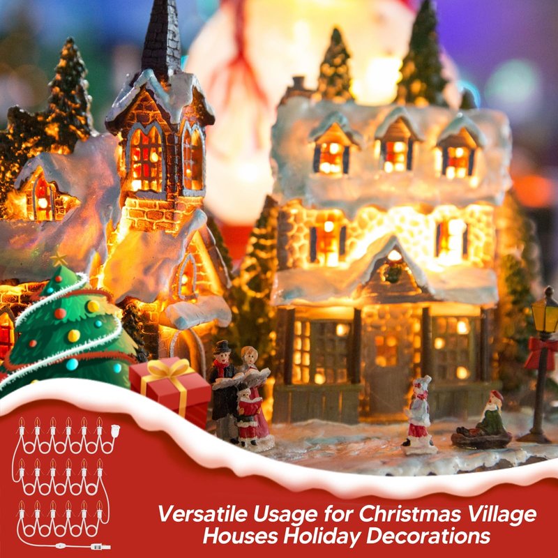 - 【Safe & Energy-Saving】 Our Christmas lights feature C7 LED bulbs that emit warm white light while minimizing power consumption. These energy-efficient bulbs offer high brightness and reliable safety, easily integrating with a Christmas village light cord for quick installation. They integrate seamlessly with a Christmas village light cord, making installation quick and hassle-free,Perfectly aligned with Christmas, it lights up the Christmas village house.