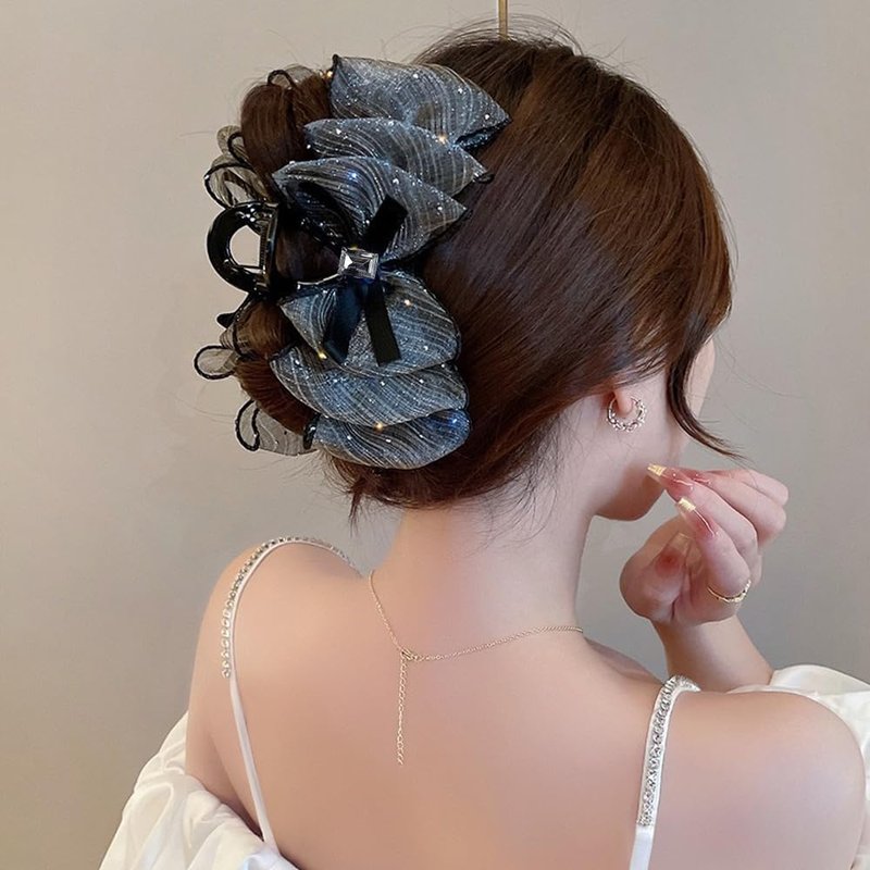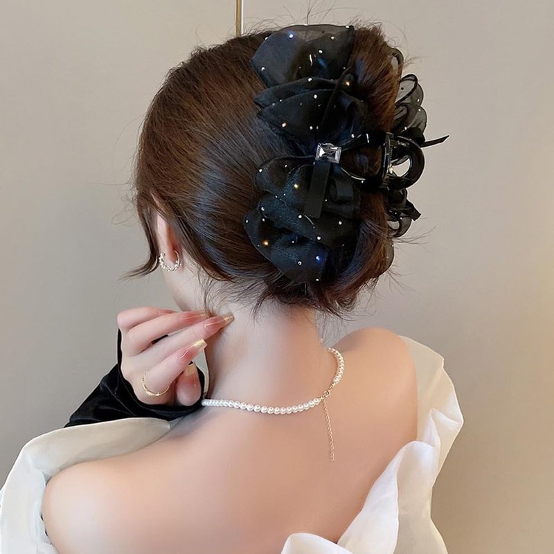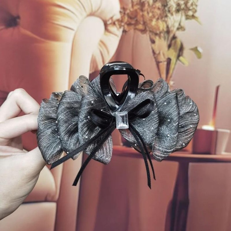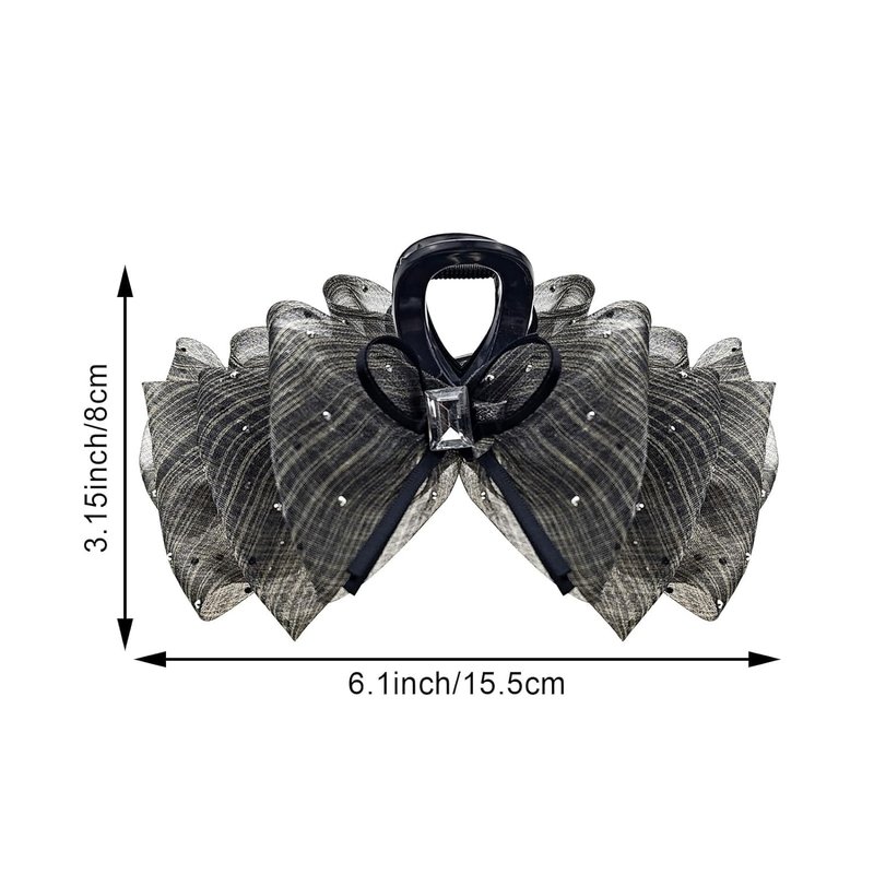 1Pack Black Big Bow Hair Claw Clips for Women Girls, Square Rhinestones Satin Silky Bow Hair Barrette Nonslip Claw Clip Solid Color Hair Accessories for Women Girls Thick and Thin Hair Personal Care