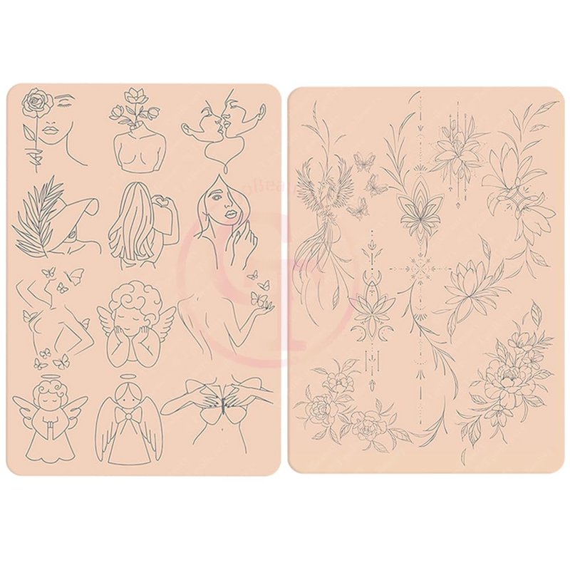 - Improving your tattooing skills with our pre-printed tattoo practice skin. Designed especially for tattoo artists and beginners to refine their craft. With its realistic texture, pre-printed designs, and durability, you can elevate your skills to the next level and confidently embark on your tattooing journey.