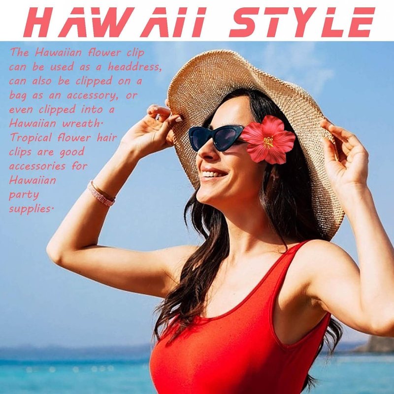 1Pc Red Hawaiian Flower Hair Clip for Women Girls Fashion Bohemian Flowers Hair Accessory for Dancer Bridal Wedding Beach Party Hair Clip