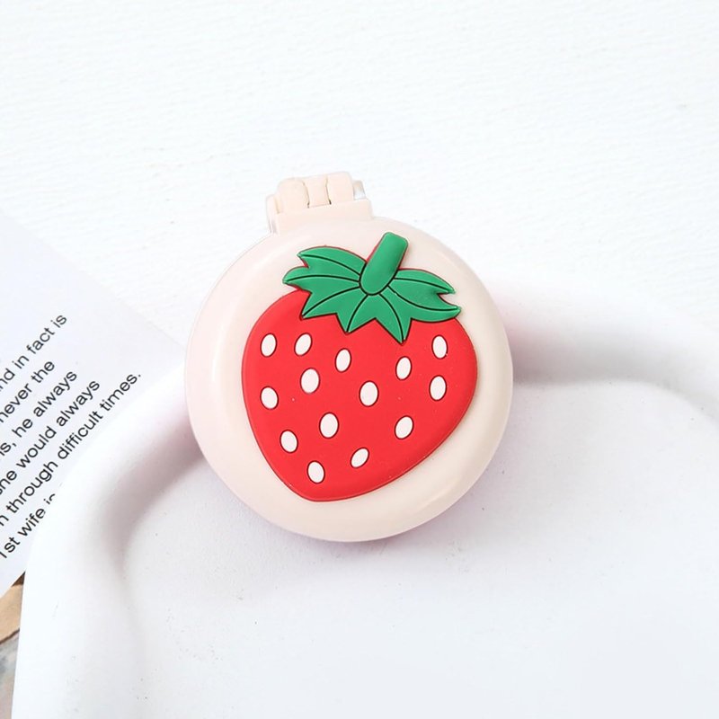 1Pc Travel Hair Brush with Mini Mirror - Portable Folding Round Massage Brush for Girls and Women, Strawberry Hair Care