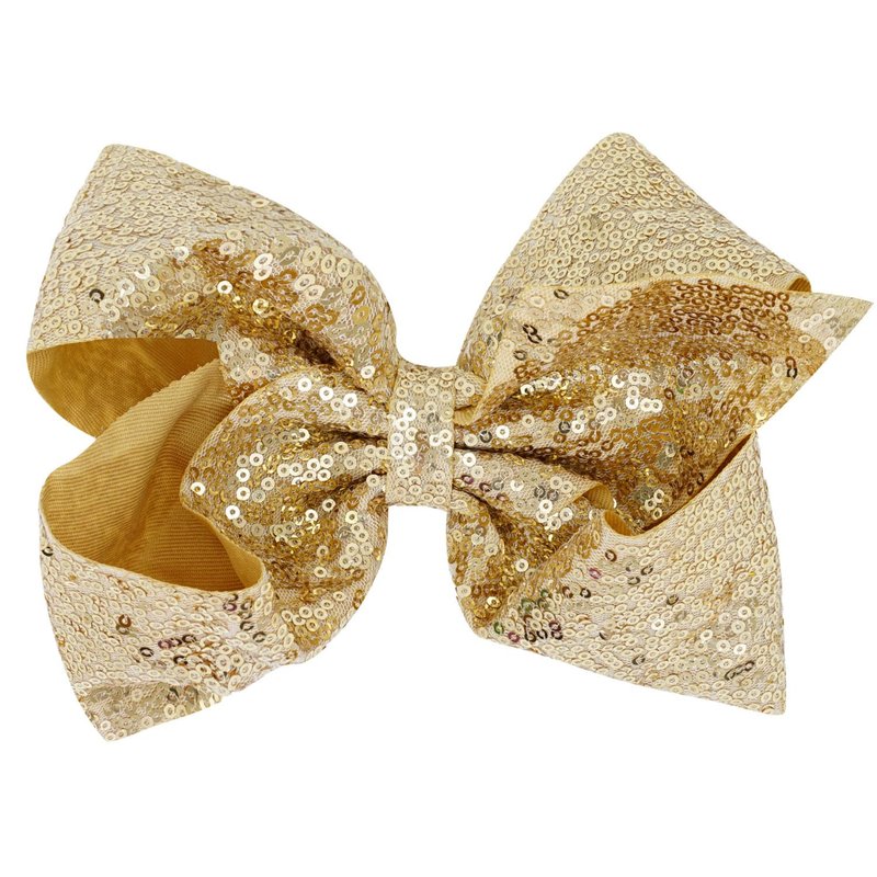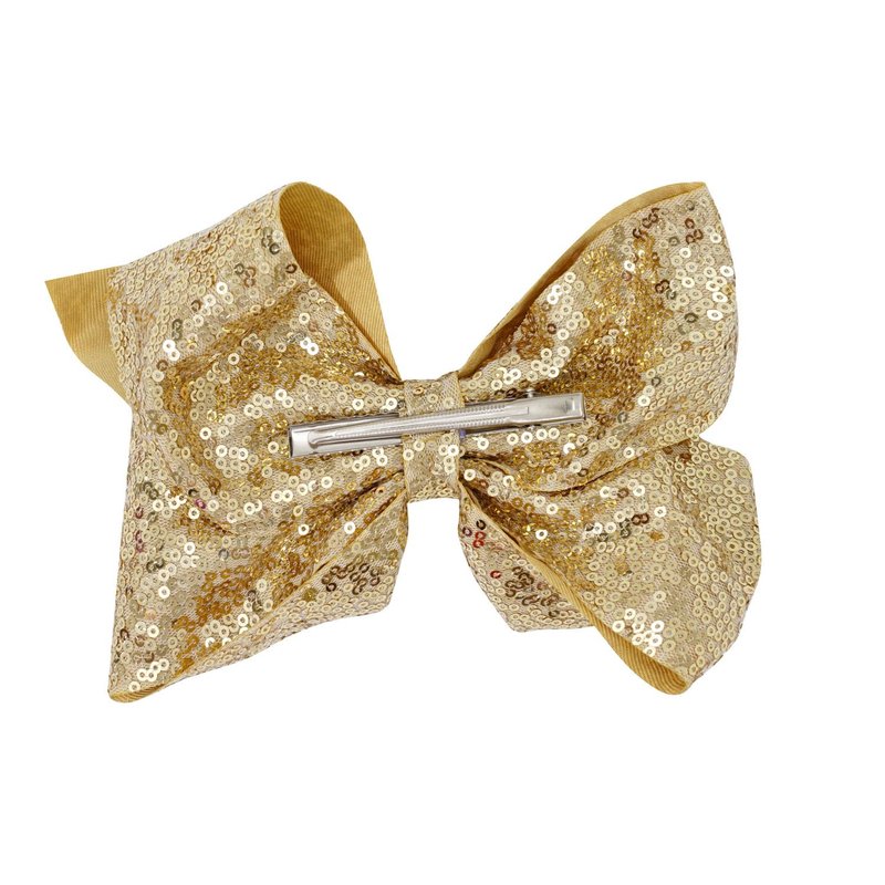 1PCS 8 Inch Big Sequin Hair Bows for Girls Alligator Clips Sparkly Glitter Hair Accessories for Little Teen Toddler Girls Kids (Gold)