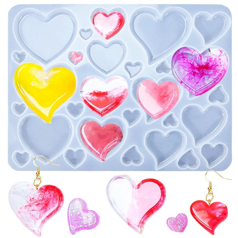 Heart silicone mold suitable for earrings, DIY jewelry, necklace, pendant, bracelets, key chains and other handicrafts and decorations. DIY crafts making, etc.