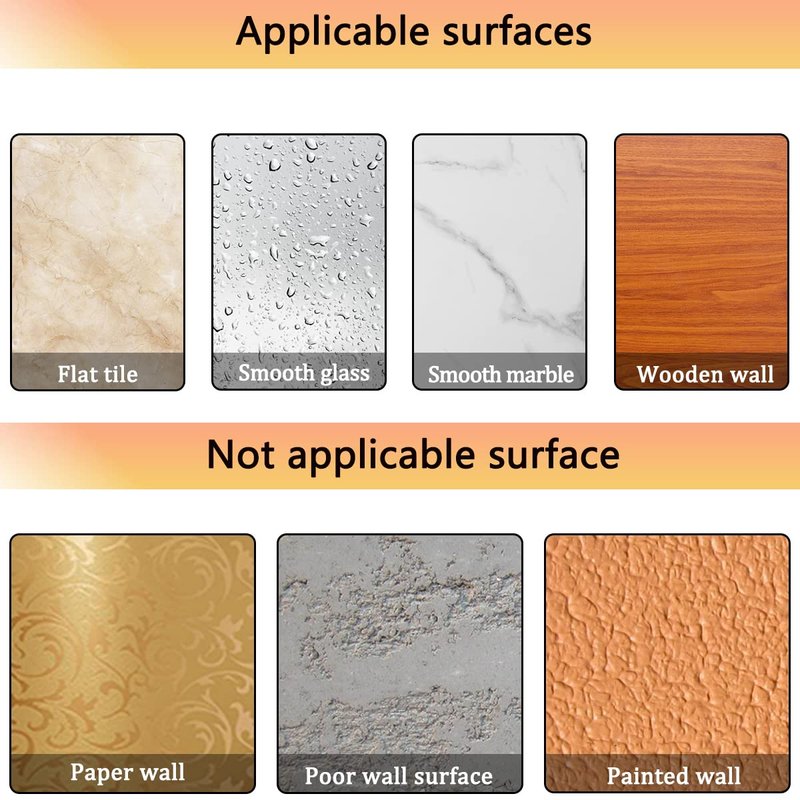 - Wide application : This Adhesive Shower Head Bracket is suitable for a variety of Smooth Marble, Metal Surface, Plane Ceramic Tile, Smooth Glass. Please DO NOT put it on the textured tiles ,concave tiles ,frosted glass or rough wood.