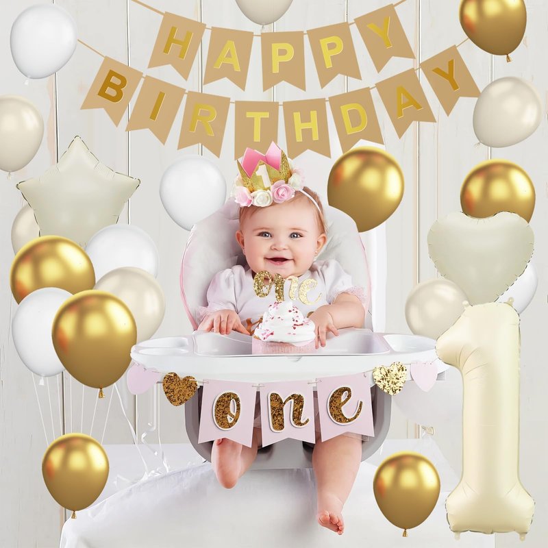 - 🎂Wide Application - The 1st birthday decorations for kids is perfect for any party decorations, baby shower, children’s party, Halloween birthday party, Christmas birthday party, Thanksgiving Day. This cream white one year old decoration set will make your girls 1st birthday party different! You can DIY any digital combination for your party, no matter indoors or outdoors. And fully use your imagination and make balloon decorations of different shapes, adding a festive touch to your memorable moments.