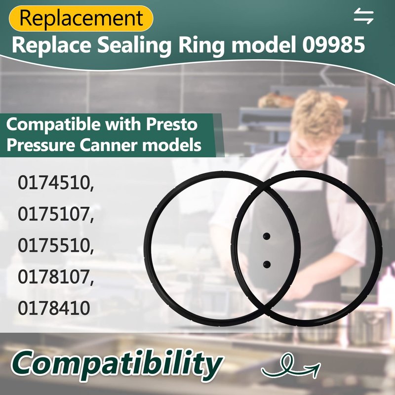 - ✅ Compatibility: The pressure canner sealing ring replace 09985 presto parts and fits presto pressure canner models 0174510(16-Quart), 0175107(18-Quart), 0175510(16-Quart), 0178107( 23-Quart ), 0178209( 23-Quart ), 0178410( 23-Quart ).