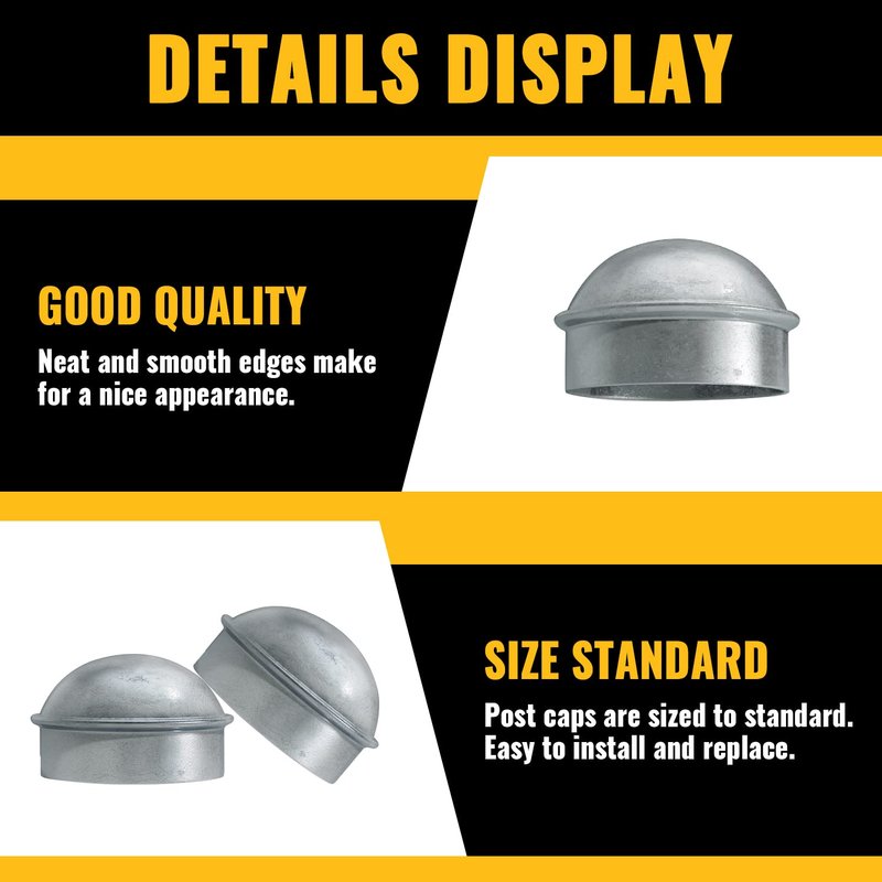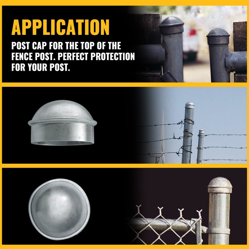 - 【HOT-DIP GALVANIZED】Chain link fence post caps with strong hardness, high corrosion resistance. Galvanized post caps are not easy to rust and have a long life span. Chain link fence parts have great performance in outdoor environments.