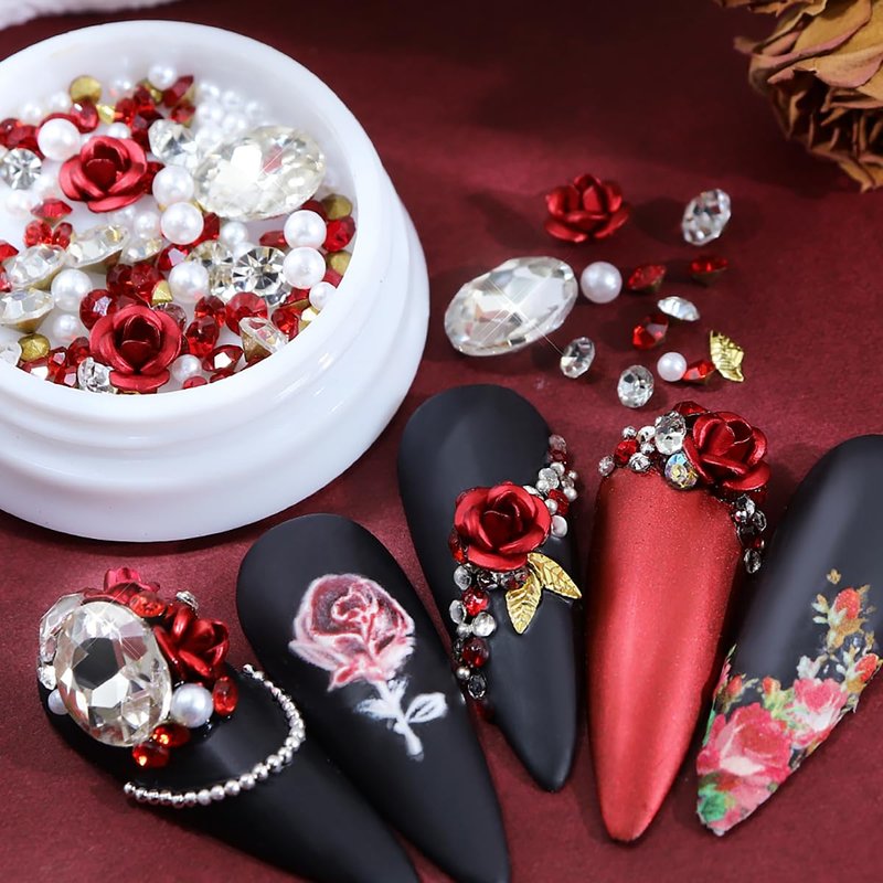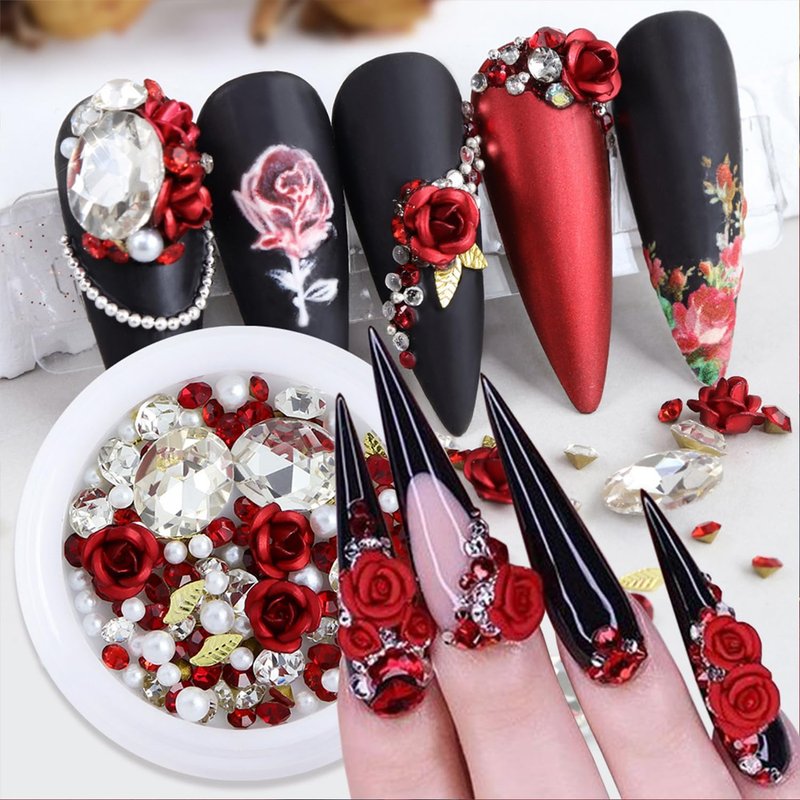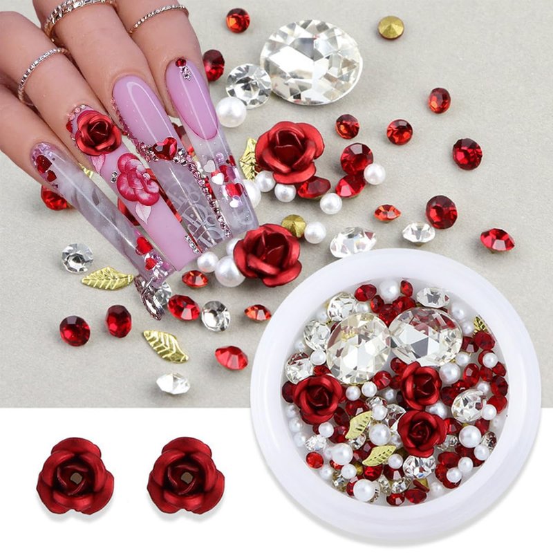 - 【Multipurpose】 Our red nail gems pink flower jewelry decorations are not only suitable for everyday manicure decoration, but can also can be used to decorate your phone, wallet, laptop,DIY craft, etc. Make you look more sophisticated at weddings and various parties, they be used as wonderful gifts for your friends and family.