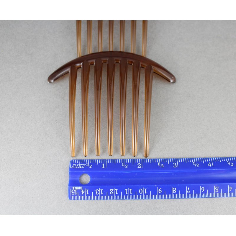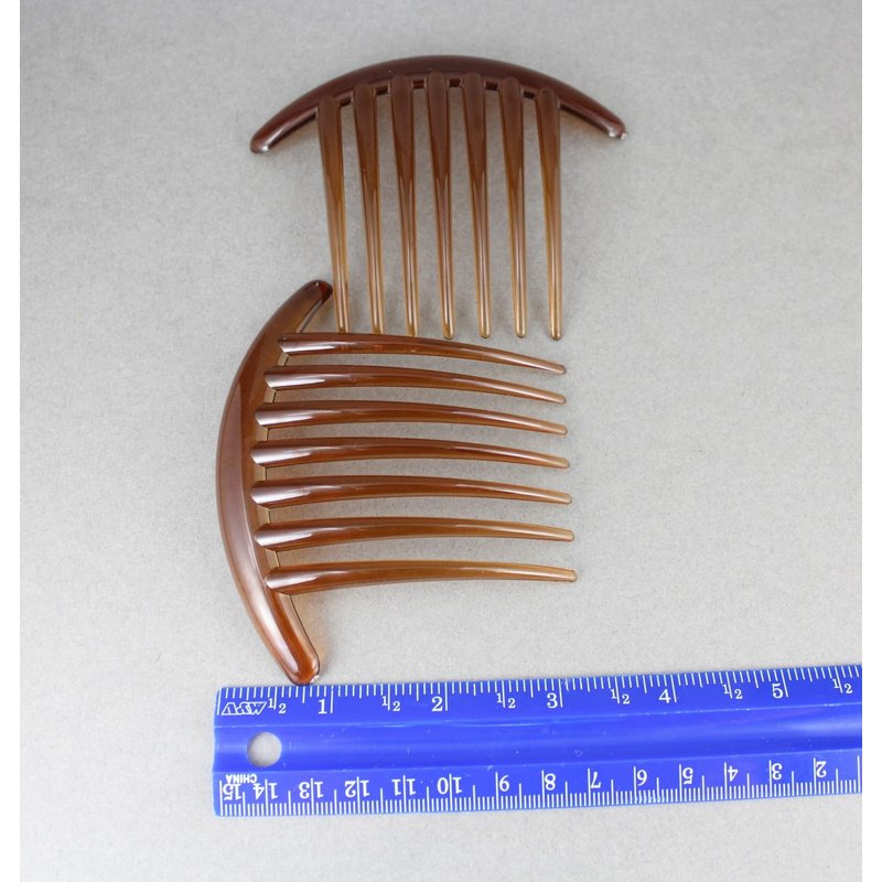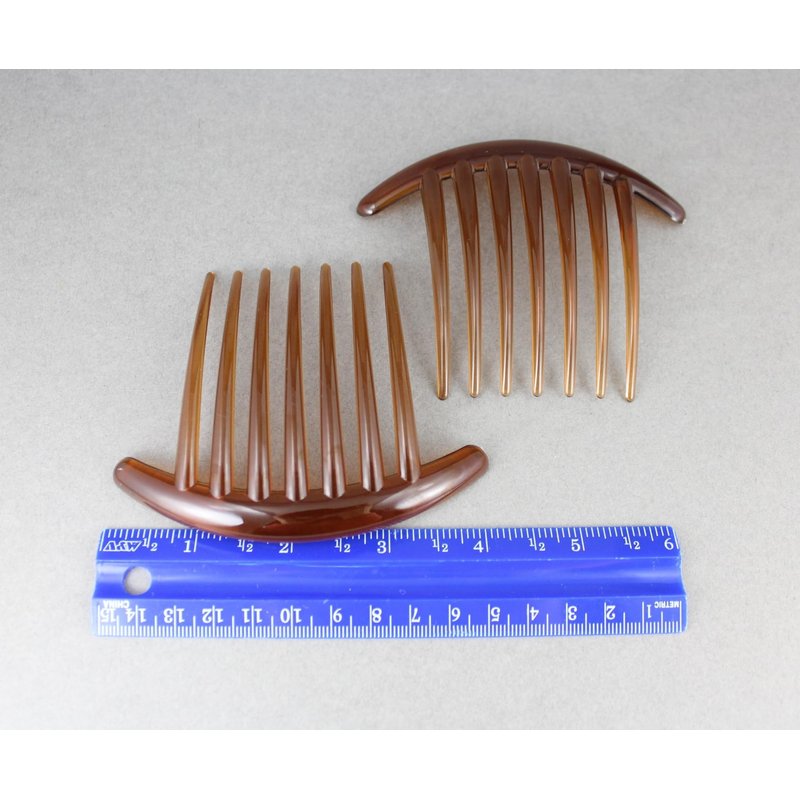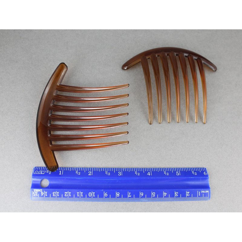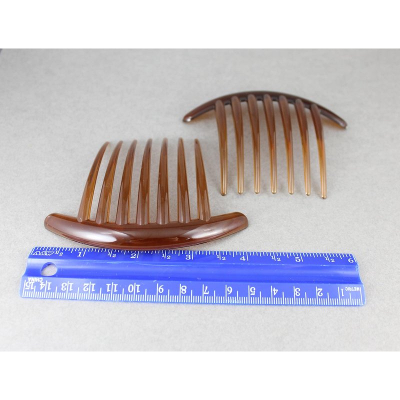 2 Brown Big Huge Hair Comb set pack Silver plastic teeth side clip 4 inches wide