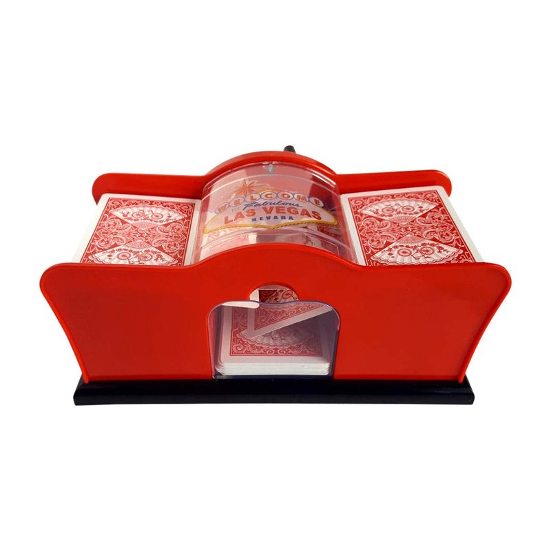2 Deck Hand Crank "Welcome To Las Vegas" Card Shuffler, Red & Black