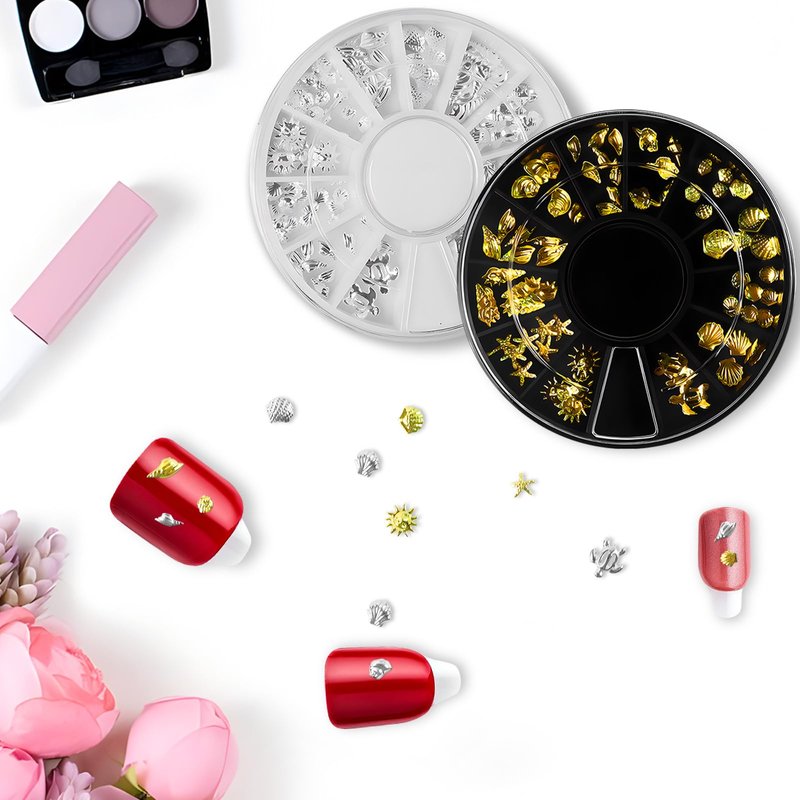 2 Disc Ocean Nail Charms - 12 Styles Silver & Gold - Beach Starfish, Sea Seashell - 3D Nail Gems Jewelry for DIY Nail Art