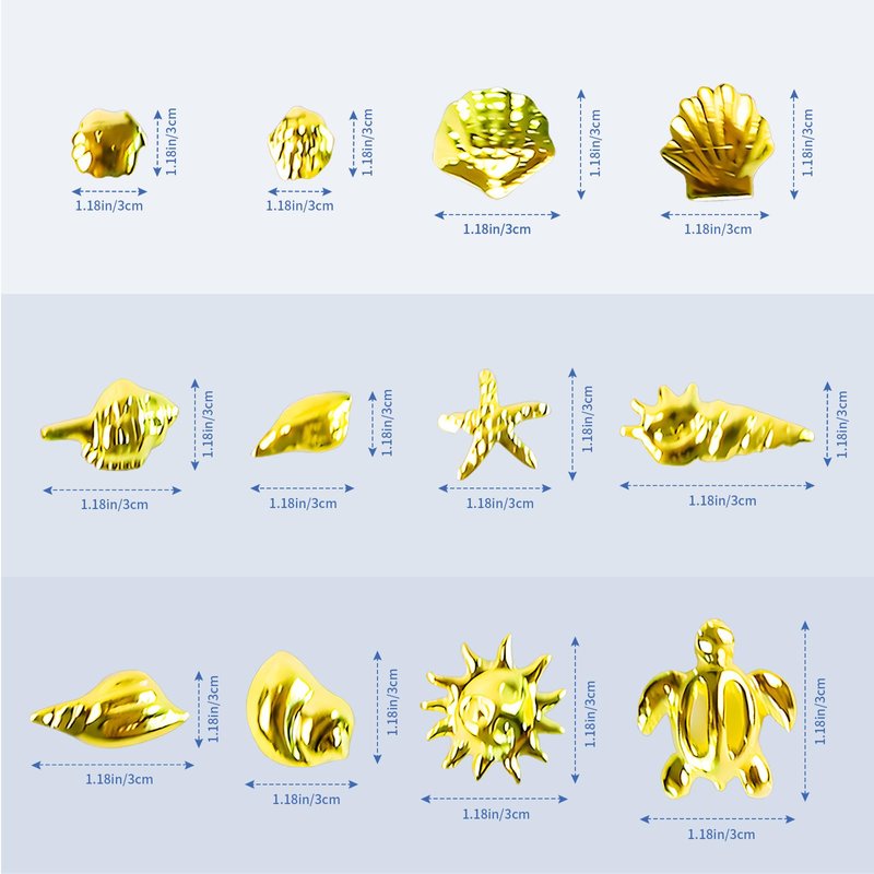 Unleash your creativity and let your nails reflect the beauty of the ocean with our 2 Disc Ocean Nail Art Charms. Dive into a world of seashells, starfish, and shimmering gold accents.