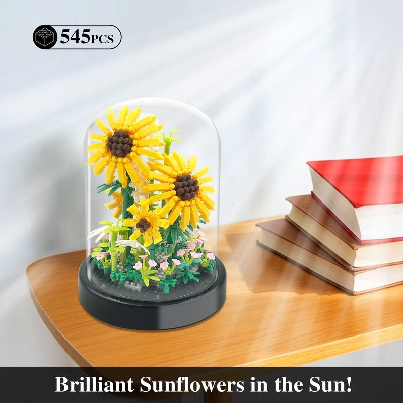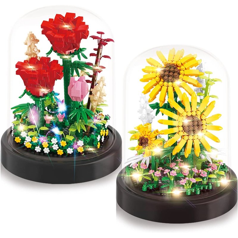 - 🌷【Fun Assembling Experience】Rose flowers consists of 593 building bricks, Sunflowers flower bouquet consists of 545 building bricks, assemble plants building toy is a challenging, interesting project, but it will stimulate people's hands-on ability, imagination, logical thinking and so on.