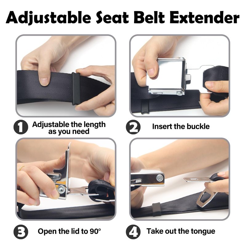 - ADJUSTABLE FOR COMFORT - The seat belt extender is made of soft polyester and sturdy stainless steel to ensure maximum comfort and safety during the flight. You can adjust to add 7“ - 23” to the length of the airplane seat belt.nd safety during the flight. You can adjust to add 7“ - 23” to the length of the airplane seat belt.