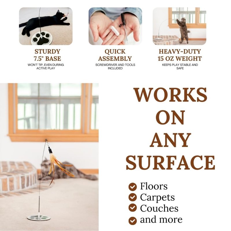 - ๐ฑ ๐๐จ๐ฆ๐ ๐๐ฅ๐จ๐ง๐ ๐๐ง๐ ๐๐จ๐ง๐๐ฅ๐ฒ? if your kitty is too intense for regular self playing cat toys, theyโll love you furrever when you give them this cat stick toy on their own Feisty Feline Floor Base!