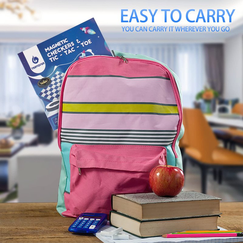 - Easy To Store, Light Weight, & Uniquely Designed: Checkers & tic tac toe outdoor game opens just like a book and its simple makes it easy for children to carry anywhere. Uniquely designed 2 magnetic travel games on one board and clear patterns with bright blue color for kids to have fun anytime, anywhere.