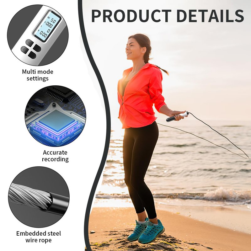 Counter: Magnetic control counting system displays the number of jumps on a clear LCD screen.