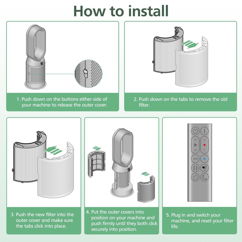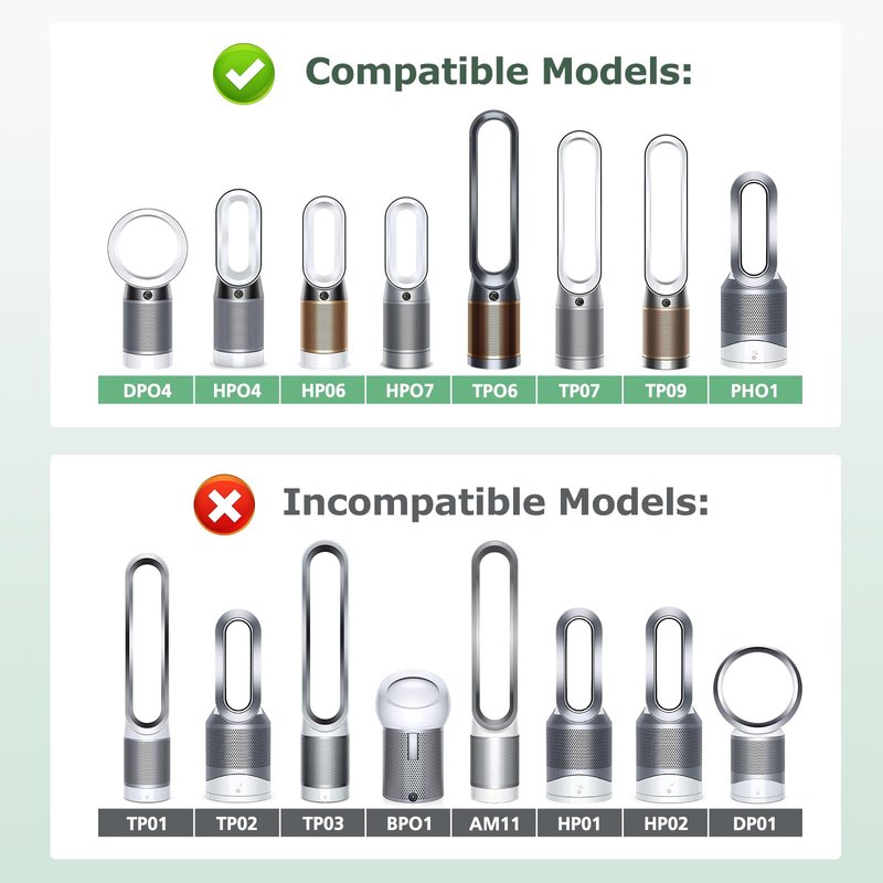 - 【DO NOT COMPATIBIE】Don't compatible with Dyson models TP01, TP02, TP03, AM11, BP01,HP01, HP02, DP01, DP02, Please double check your model on the bottom or side of the machine before order.
