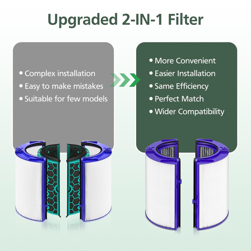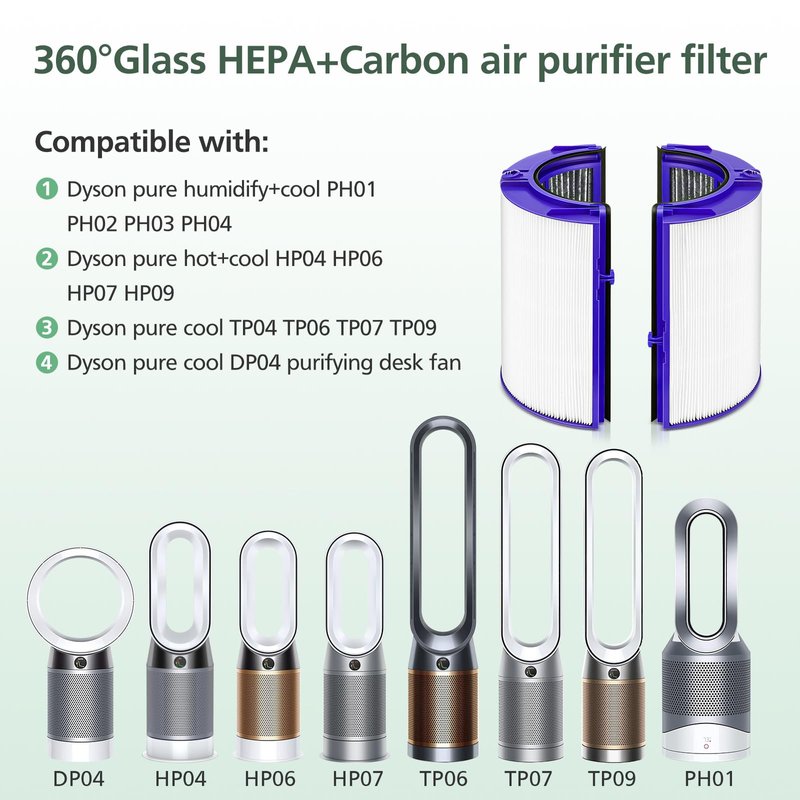 - 【COMPATIBIE MODELS】This upgraded 2-IN-1 filter is specfically designed for Dyson PH01 HP07 HP10 TP07 TP10 TP09 HP09 HP06 TP06 Models for Dyson Pure Cool, Pure Hot Cool Cryptomic and Humidify Cool Air Purifiiers.