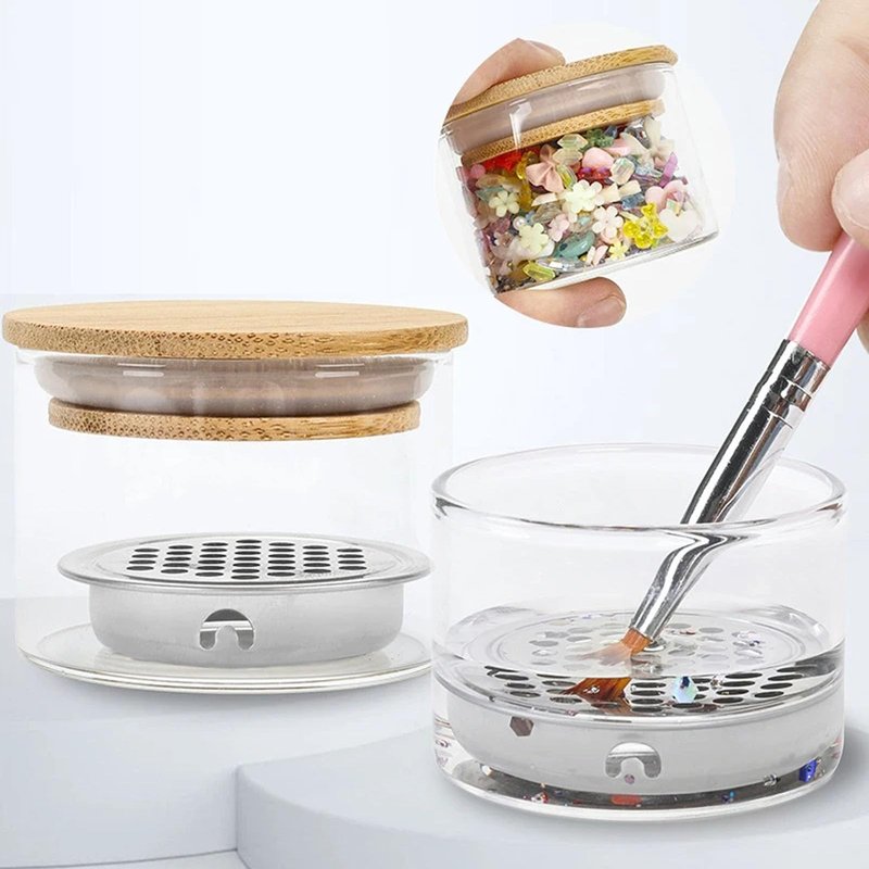 - 【Stainless Steel Filter】: The nail washing cup holder comes with a stainless steel filter, which effectively separates the nail polish and the brush, making it easier to clean your nail art brushes.Remove residual glue.