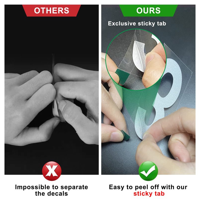 - 【Easy installation with sticky tab & pre-cut】: Not only are this numbers for mailbox can be easy to separate the backing with our exclusive sticky tab, but each number is pre-cut for you to install effortlessly in minutes. All mailbox numbers reflective come with detailed instructions. If you have any questions please contact us, we will reply within 24 hours.