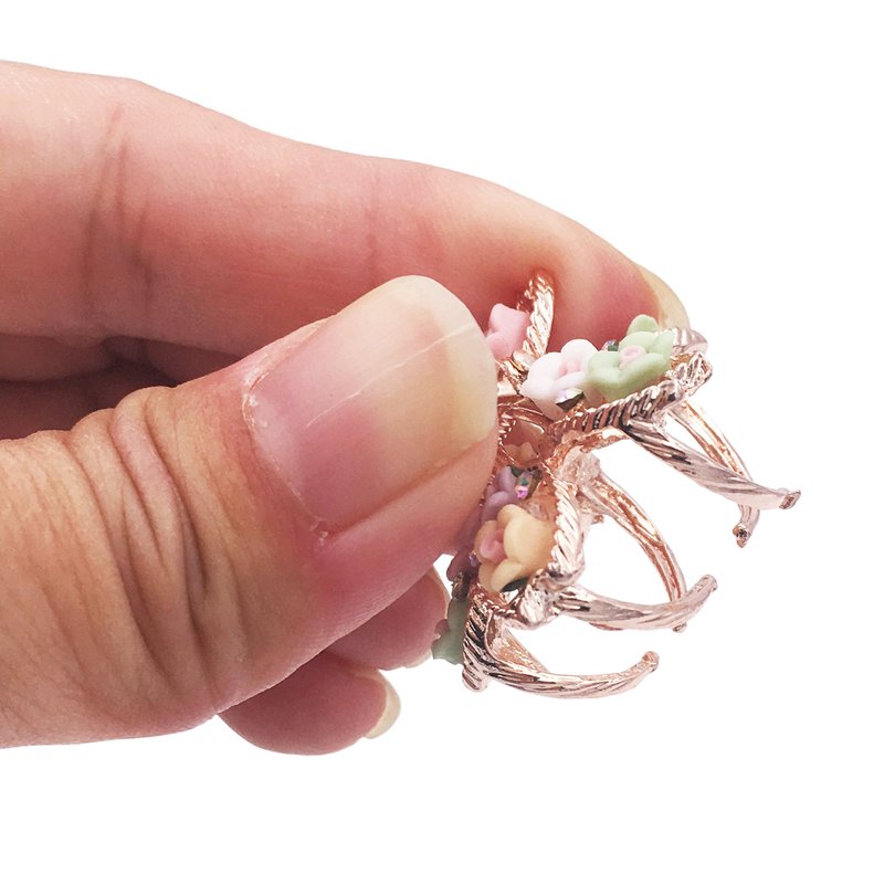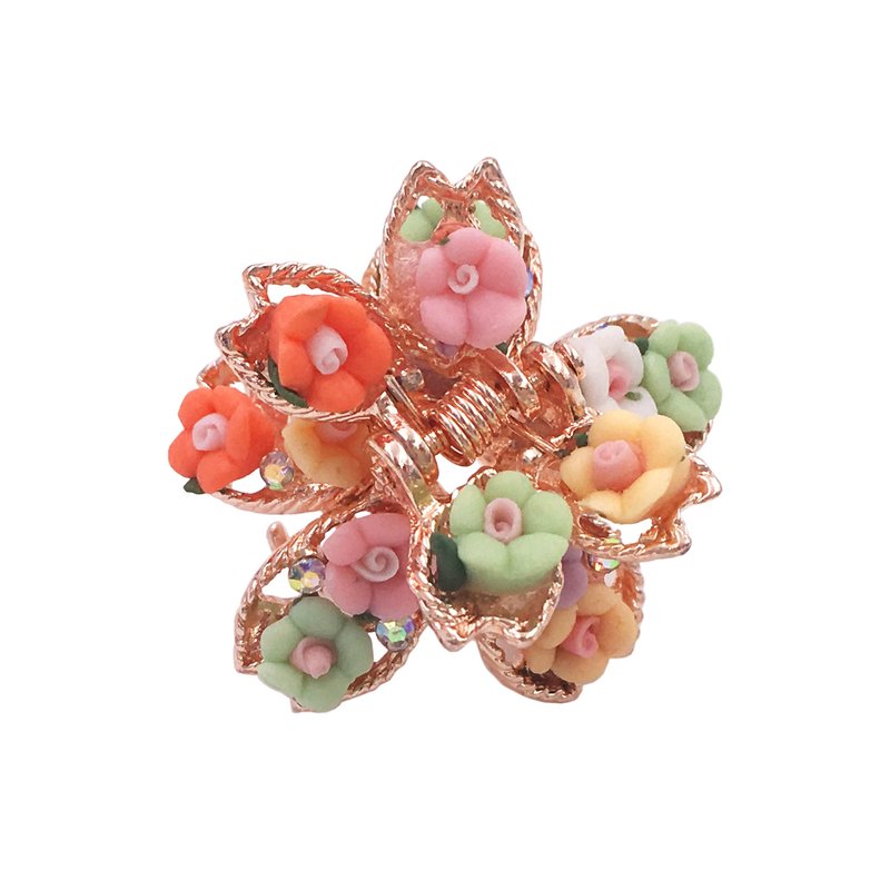 - These pretty metal hair claws are decorated with small colorful ceramic flowers and rhinestones