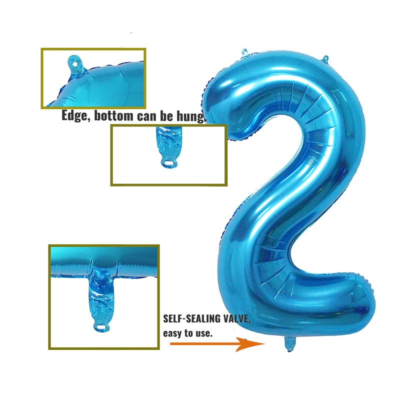2 Number Balloon Blue Big Number Balloons 40 Inch kit for Happy Birthday Party Decorations Foil Mylar Helium Baby Shower