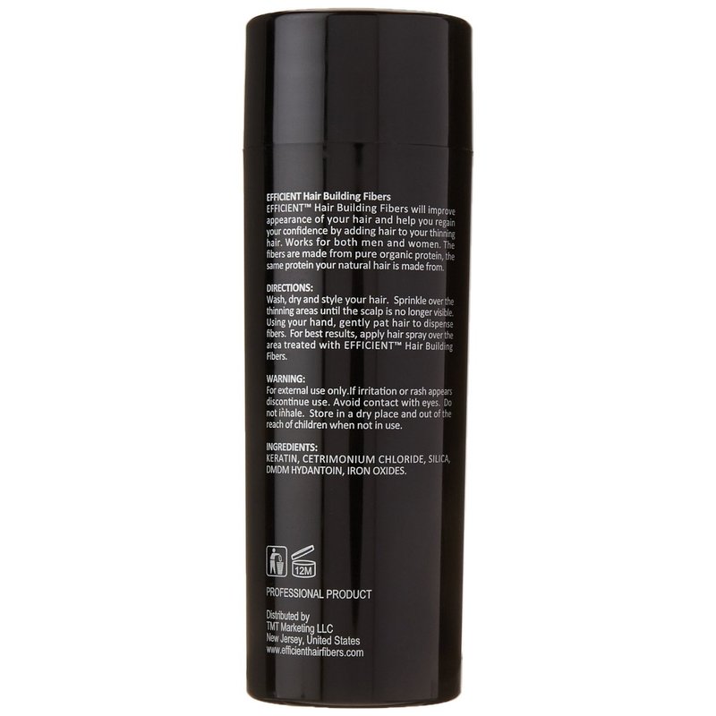 If you suffer from thinning hair or hair decline, EFFICIENT Hair Building Fibers will boost look of your hair and aid you regain your confidence by adding hair to your thinning hair. EFFICIENT Hair Building Fibers instantly fill in thinning hair and bald spots. In just less than a minute, you'll have a perfect natural look with a full head of hair.