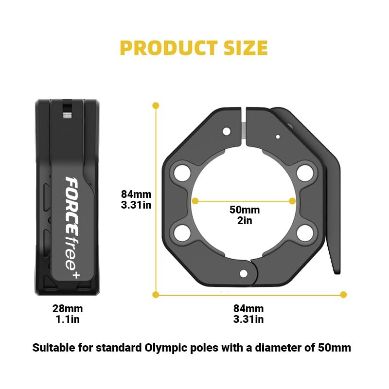 - Perfect for Olympic Barbells:Designed to fit all standard 2-inch Olympic barbells, Forcefree barbell collars feature an ergonomic handle for a comfortable grip and enhanced safety during intense lifts.