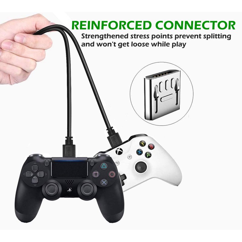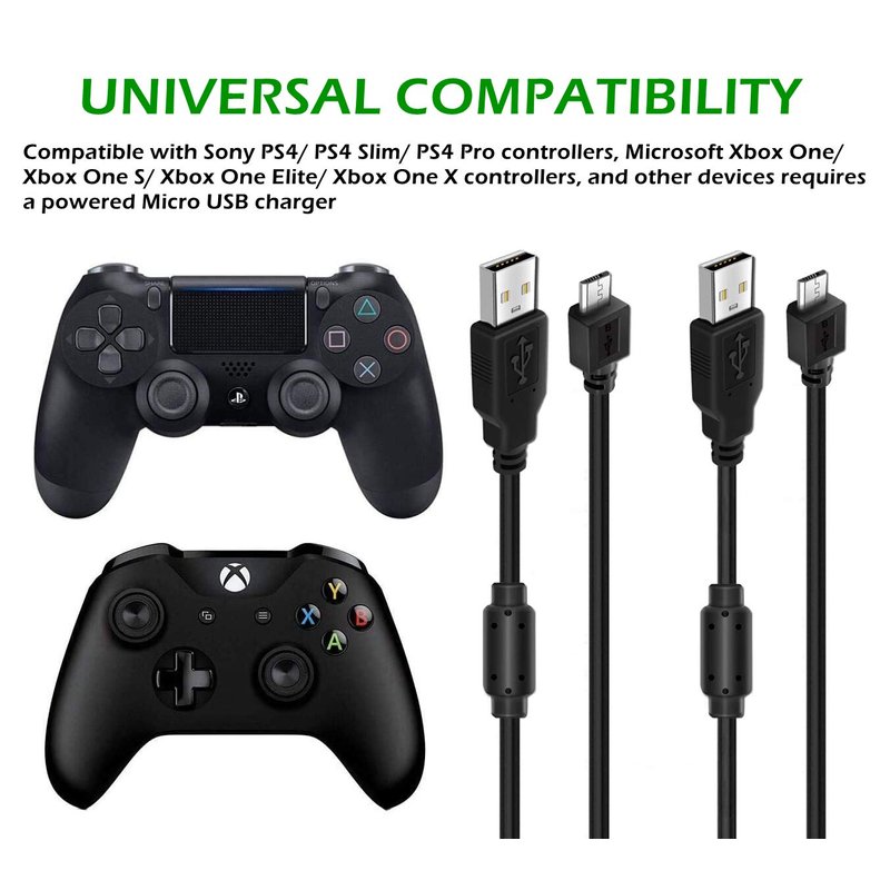 - 🎮 MADE FOR GAMING: Unique design to use for PS4/ PS4 Slim/ PS4 Pro controllers, Xbox One/ One S/ One Elite/ One X controllers, and more devices with micro USB interface. Design with conductivity ferrite core to filter out signal noise and reduce transmission errors.