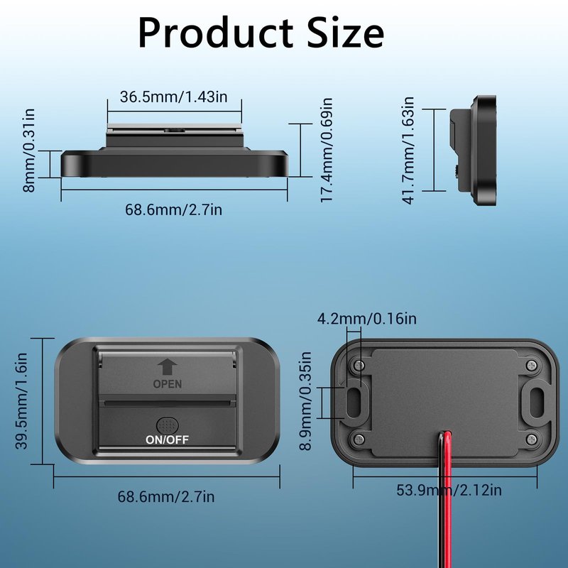 Simply Installation: No need to drill large holes, just a small hole to put the wire in, connect black wire to negative pole, red wire to positive pole, and the blue light is always on when power is on