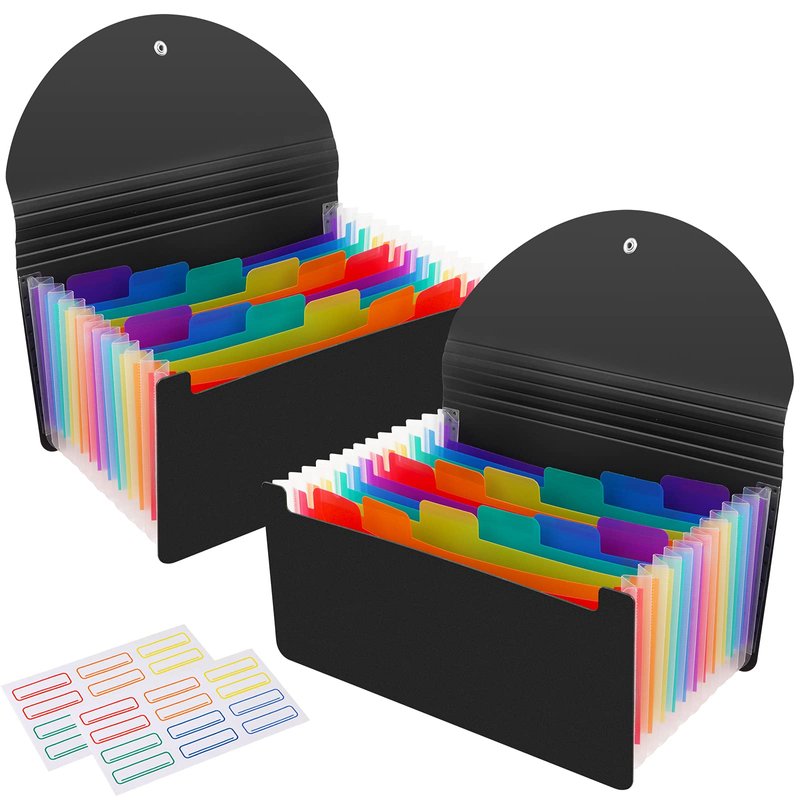 - 2 Pack 13 Pockets accordion file organizer, colored labels for easy subdivision and indexing.