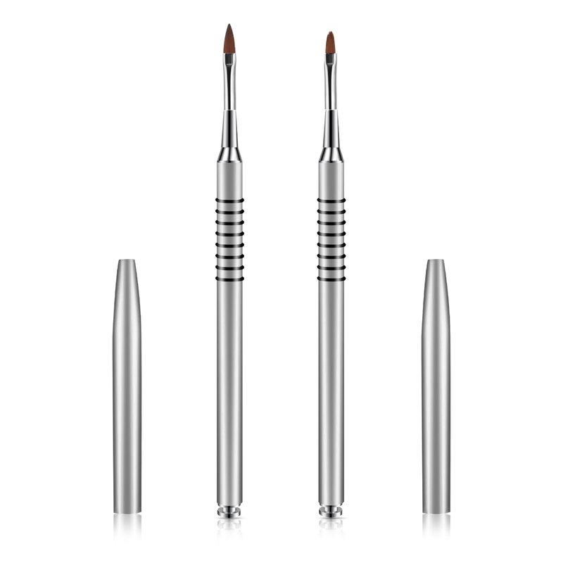 2 Pack 3D Nail Art Brush for Acrylic Powder, Kolinsky Acrylic Nail Brushes Set, Nail Lining Brush Nail Salon Painting Brush Pen with Non-Slip Handle, Silver Metal Nail Art Pen (Size #2#4)