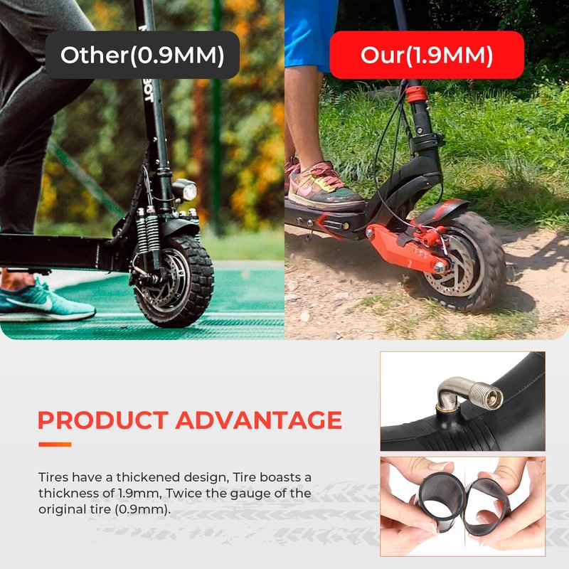 - 【EXTRA THICK TIRE TUBE】: Tires have a thickened design, Tire boasts a thickness of 1.9mm, Twice the gauge of the original tire (0.9mm). This inner tubes prevent explosive punctures with their self-sealing properties.
