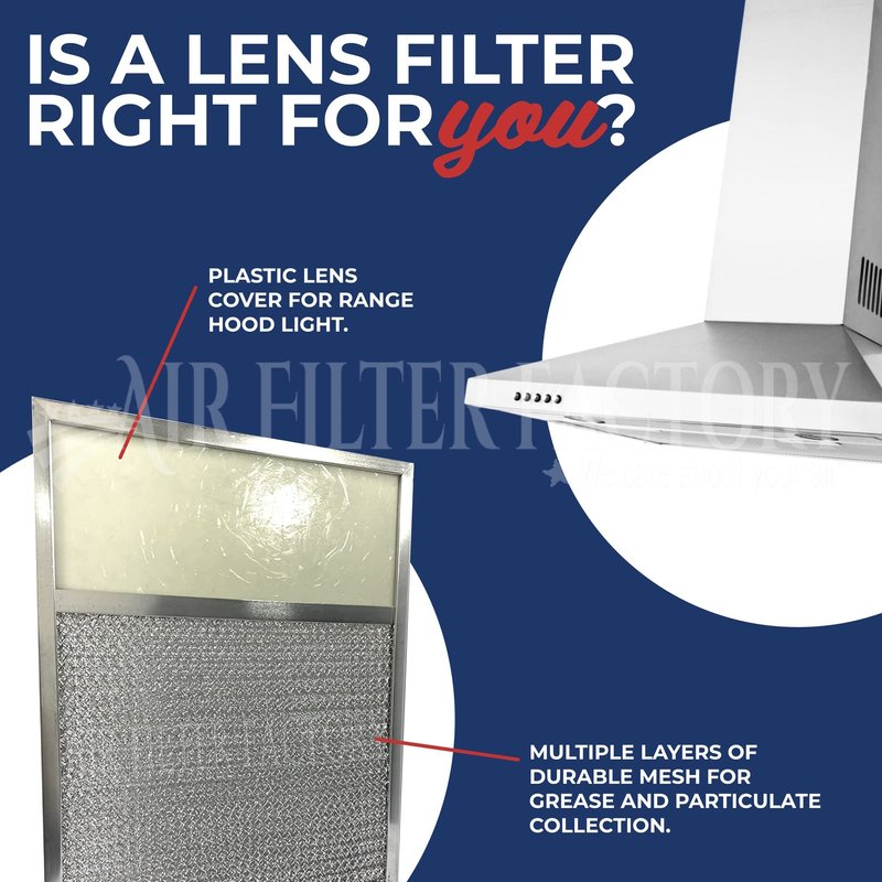 Authentic Air Filter Factory Brand Product. UPC 842477108298. This two pack of Air Filter Factory OEM aluminum mesh range hood filters with light lens are meant to help capture and eliminate grease and mist from cooking, as well as provide a cover for the range hood light. These filters are designed and distributed solely by Air Filter Factory.